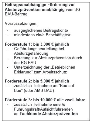 Beitragsunabhängige Förderung zur Absturzprävention