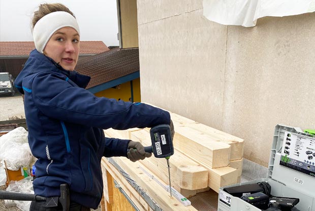 Nach dem Abitur wollte Charlotte Kleemann (19) Architektur studieren. Doch sie entschied sich für eine Zimmererlehre im Innungsbetrieb Max Kiener Zimmerei GmbH in Emmering (Landkr. Fürstenfeldbruck). Mittlerweile ist sie im 3. Lehrjahr und bereut ihre Entscheidung nicht – im Gegenteil.